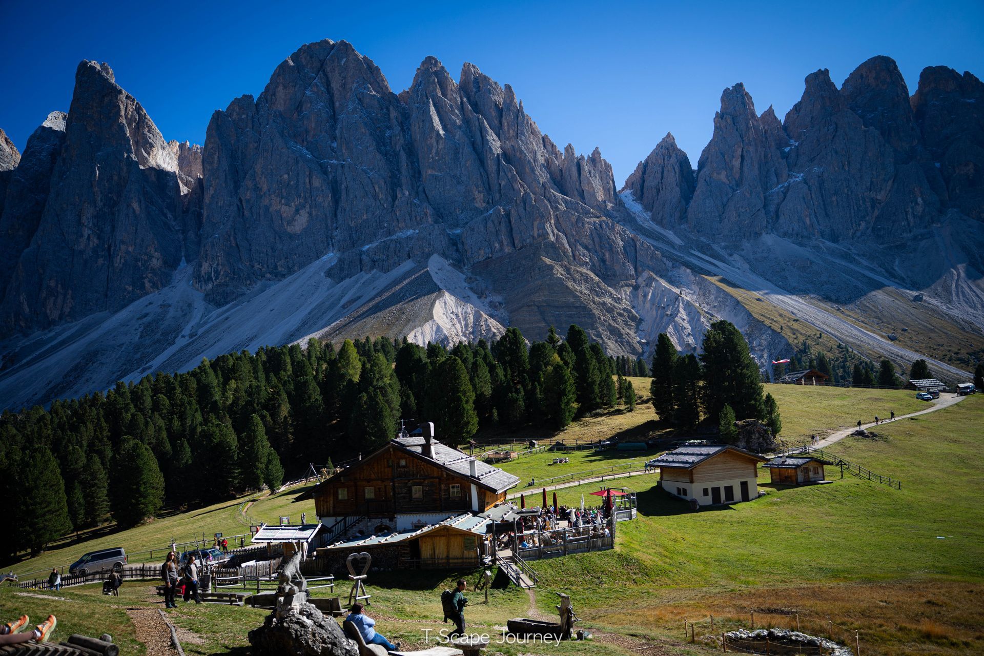 12.00น ถึง Cinema delle Odle หรือ Geislerkino เป็นจุดชมวิวกลางแจ้งในเทือกเขา ที่มี "เก้าอี้ไม้เอนหลัง" ในหุบเขา Val di Funes โดยเก้าอี้หันหน้าเข้าหาเทือกเขา Odle (Geisler) ที่ตั้งตระหง่านเหมือนหน้าจอภาพยนตร์ธรรมชาติขนาดยักษ์